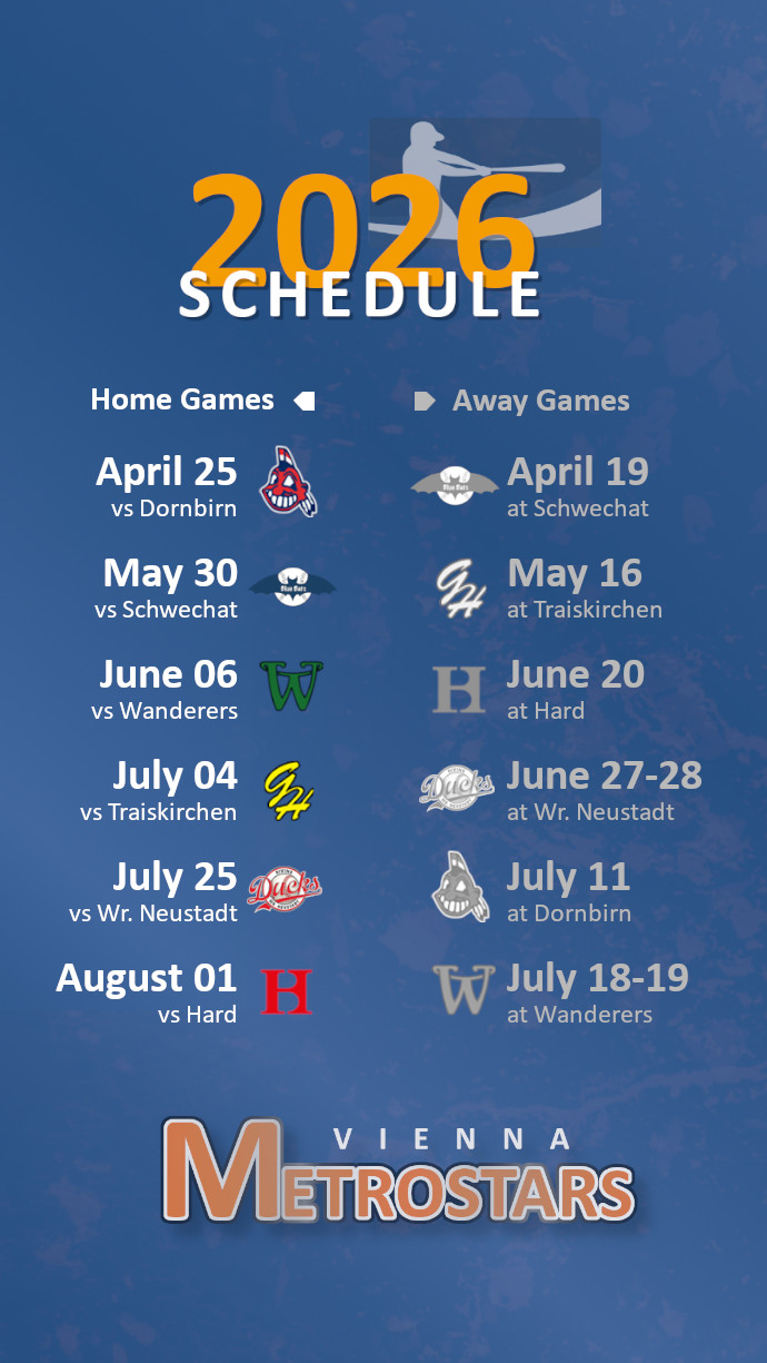 Das erste große Highlight und das erste Heimspiel das im Kalender vermerkt werden sollte, ist das Aufeinandertreffen mit dem Vizemeister der vergangenen Saison den Dornbirn Indians. Unser Homeopener steigt am 25. April im Ballpark Freudenau.